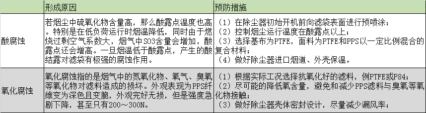 腐蝕損壞最明顯的特征為濾袋的強(qiáng)度整體大幅度下降,除塵中主要表現(xiàn)為酸腐蝕,氧化腐蝕等導(dǎo)致濾袋失去可以承受的負(fù)荷,從而失去過濾性能而失效。